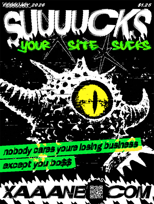 While my style was brewing I landed on language that would compliment the counter-culture direction - none of that try hard "desperate for business" bologna. I wanted to capitalize on the fact that lots of websites look like dirt, with taglines like "your site sucks".